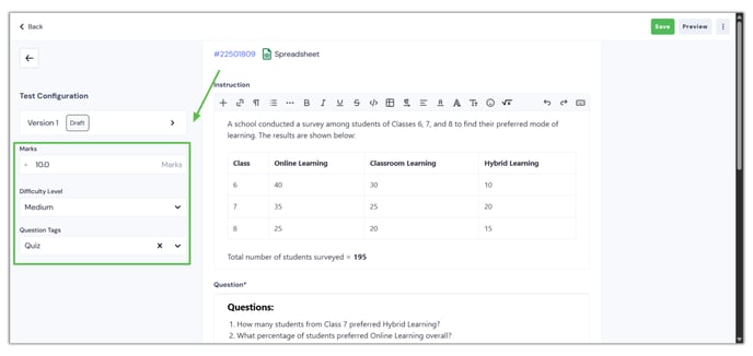 - Furthermore, you can customise the mark, difficulty level, and tags.