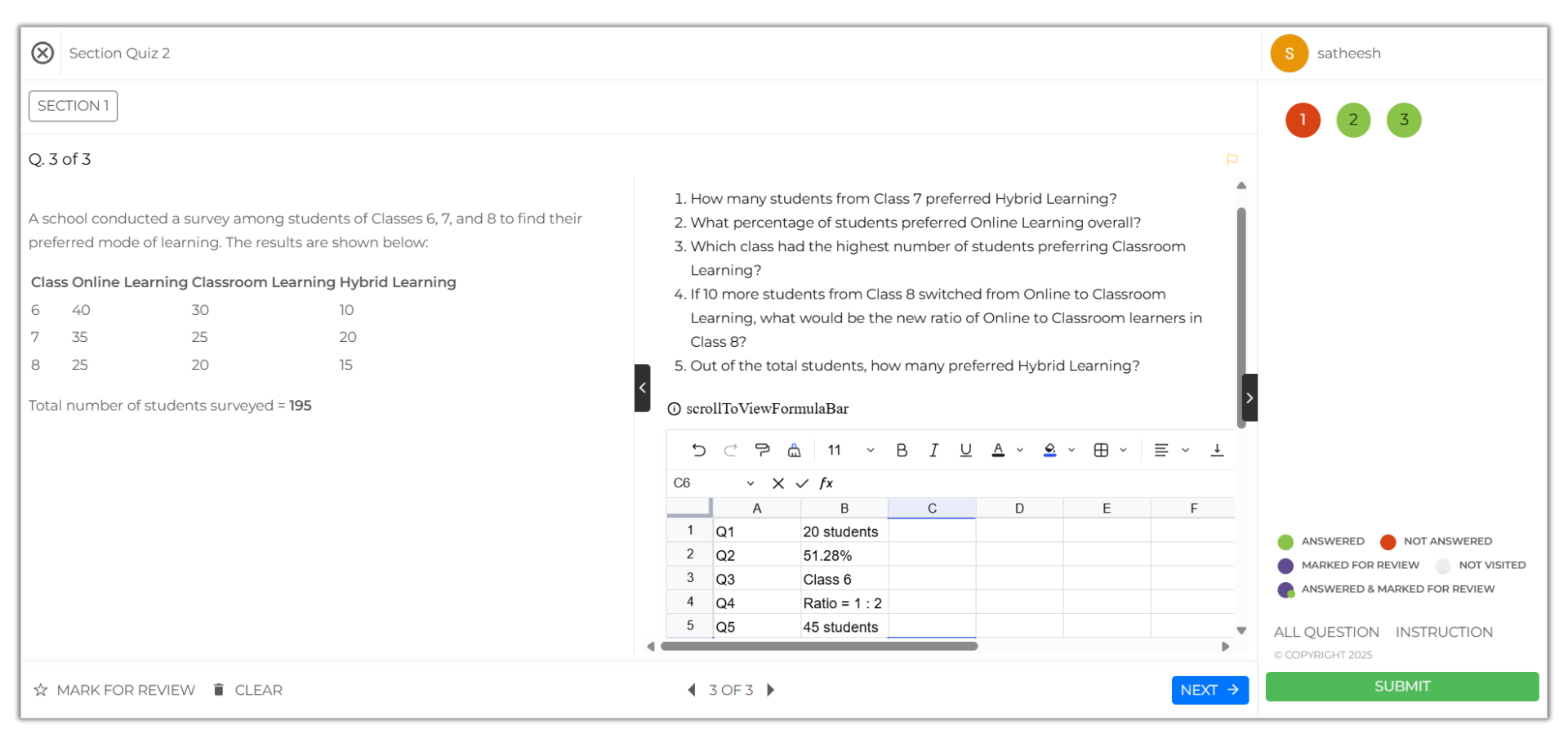 On the learnyst platform, you may construct a Sheet processor type of questions so students can write their answers in the Spreadsheet.