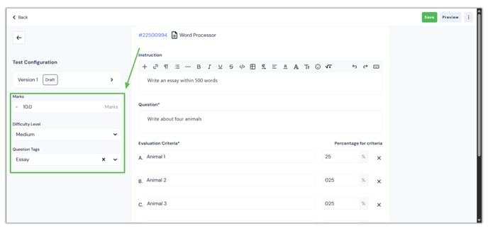 - Furthermore, you can customise the mark, difficulty level, and tags.
