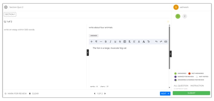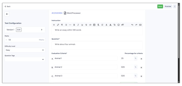 - Here, you can write an instruction, a question, and the criteria for the mark, much like an essay question.