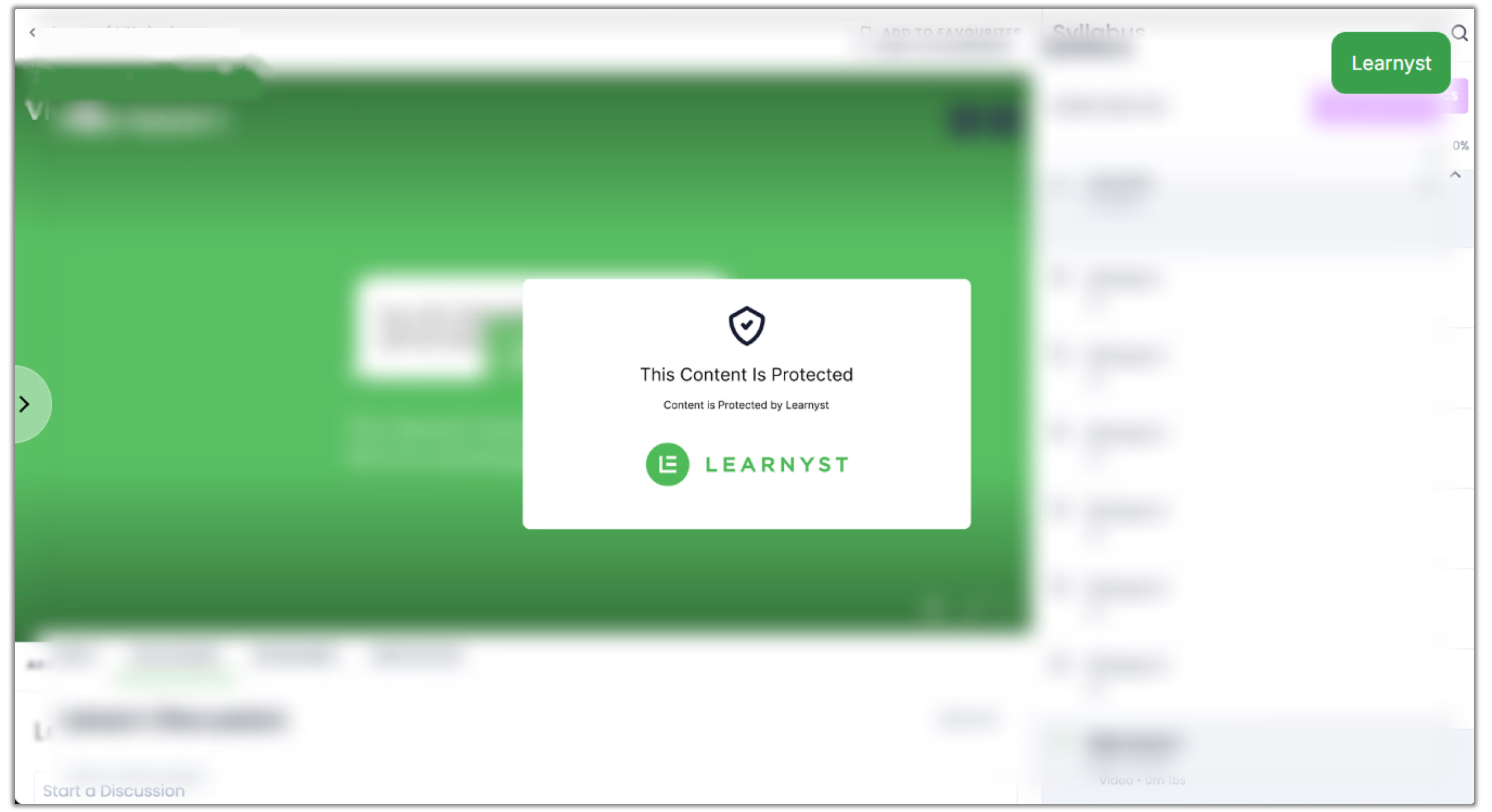 When learners watch your course videos through a web browser, Learnyst uses Digital Rights Management (DRM) technology to protect your content. DRM ensures that only authorized learners can view the videos and that these files cannot be downloaded, copied, or shared outside your platform.