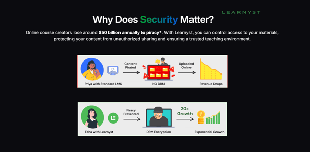 At Learnyst, we take a smarter approach — enforcing DRM directly at the OS and app level.